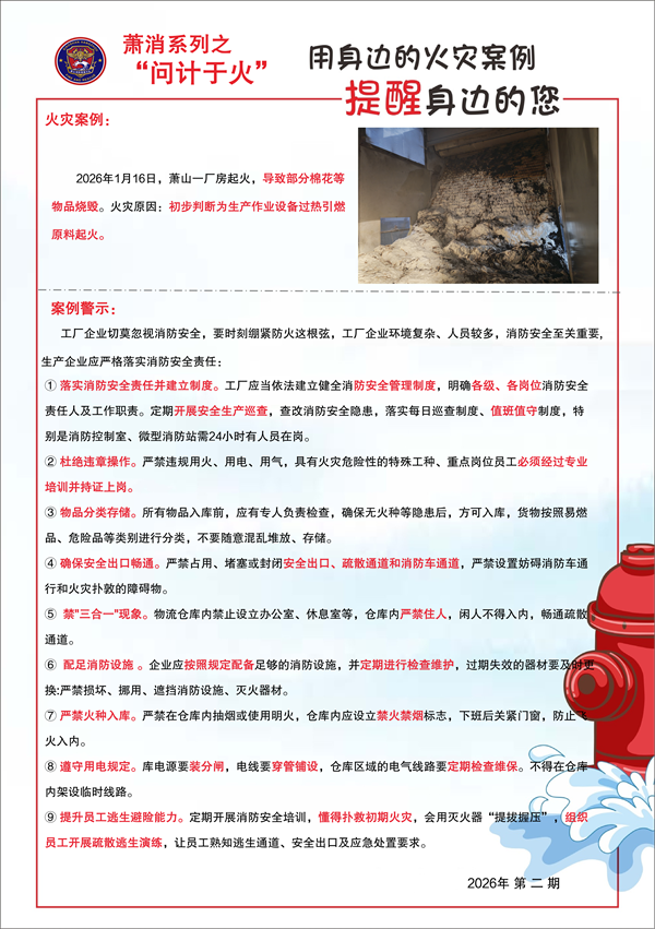 为进一步强化基层消防救援站执勤备战意识,提升队伍正规化管理和灭火救援实战能力,2月20日,萧山大队大队长姜立平深入湘湖消防救援站开展...[详细]